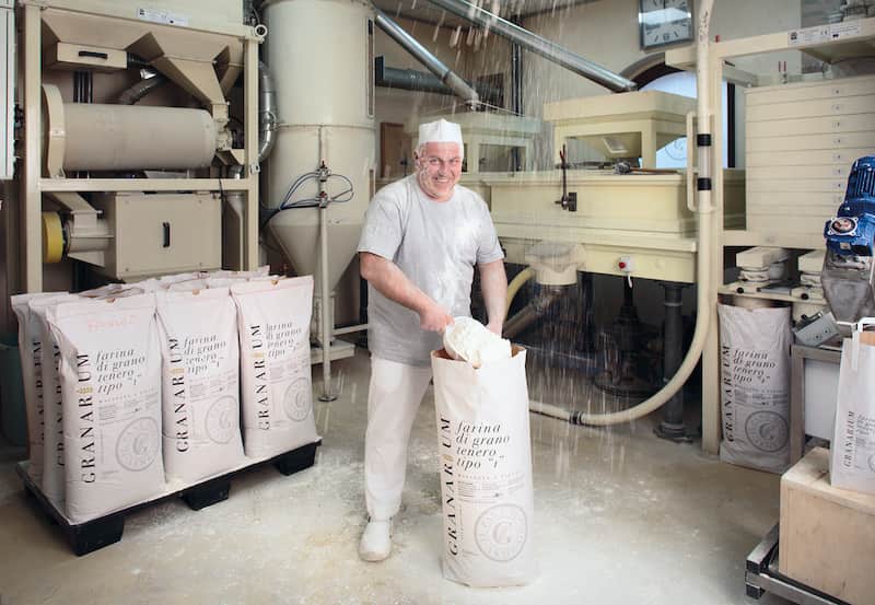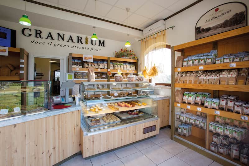 In questa struttura aziendale quindi c’è l’intera filiera cerealicola: il grano prodotto in azienda, viene stoccato in silos esterni di vetroresina per alimenti dove l’unico metodo di conservazione è la movimentazione e l’areazione; entra poi all’interno dove viene molito con macine in pietra naturale, si estrae la farina che poi viene panificata con lievito madre. Il pane, poi viene cotto nel forno a legna ed infine venduto nel piccolo e grazioso negozio. Il nostro obiettivo è offrire al consumatore finale un prodotto di altissima qualità, unico per l’assoluta trasparenza di tutte le sue fasi di filiera.